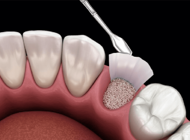 在需要補骨粉的牙齦位置,將牙齦切開,確認需要補骨粉的位置與大小後,在齒槽骨萎縮處,填入適量骨粉,讓自體骨質細胞可以沿著生長。